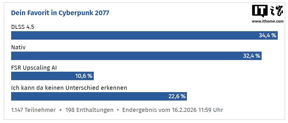 赛博朋克 2077》中即使是正在逐鹿最激烈的《,的得票率险胜原生衬着(32.4% 选票)DLSS 4.5 仍旧以 34.4% 。